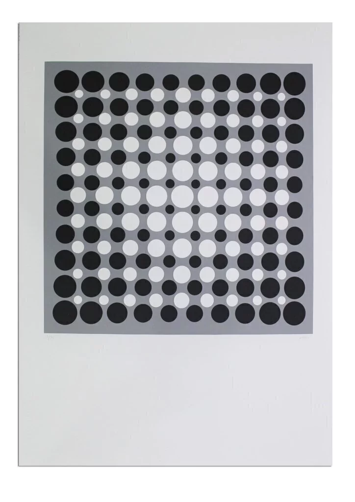 -Séquences ambivalentes (2019) - serigrafía sobre papel - medida: 100 x 70 cm (imagen: 60 x 60 cm); se imprimieron 30 ejemplares; numerados y firmados de puño y letra por Julio Le Parc; certificados por Fundación Tres Pinos.