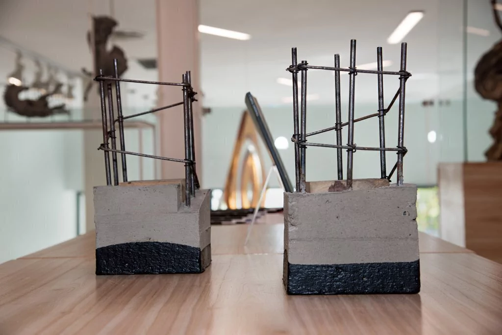 Medidas: 35cm x 15cm x 15cm. Cemento, hierro y madera.